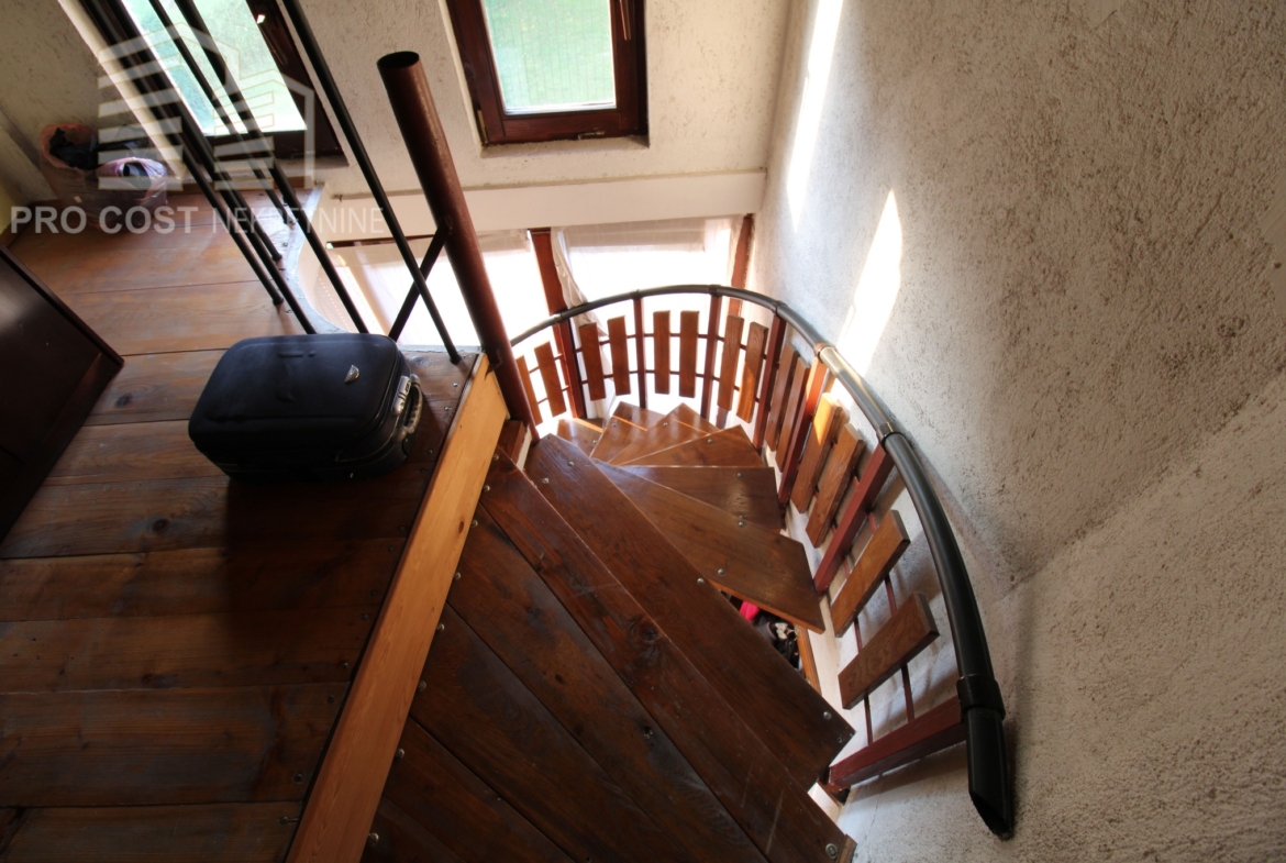 Na drugom spratu nalaze se dva balkona s kojih se pruža predivan pogled na šumu I magistralni put. Također, na ovom spratu se nalazi velika bračna soba s walk-in ormarom, kao i mali toalet..