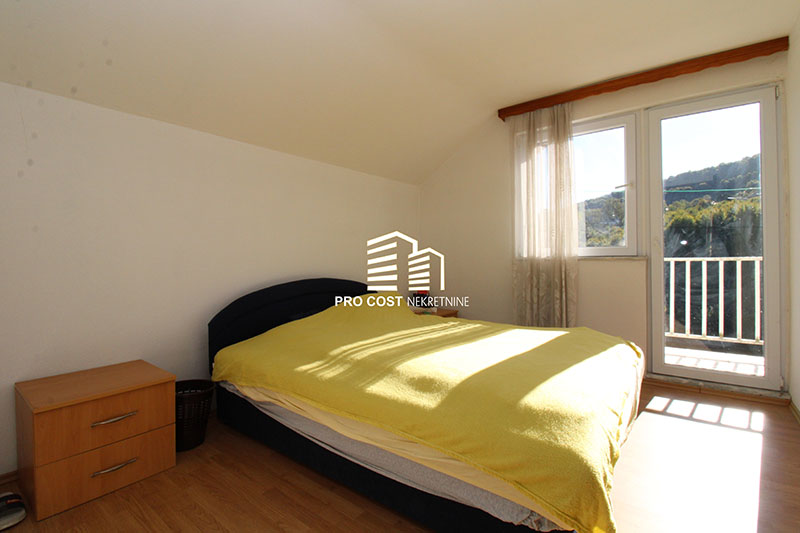 Prodaje se uknjižena kuća spratnosti P+1+Pt bruto kvadrature 140m2 na prostranoj i osunčanoj parceli površine 1000m2. Prema informacijama vlasnika predmetna nekretnina je uknjižena a prije nekoliko godina je u potpunosti adaptirana. U prizemlju se nalazi jedna prostorija i garaža. Na prvom spratu je smješten dnevni boravak sa kuhinjom, kupatilo, ostava i balkon. Unutrašnjim stepenicama se pristupa u potkrovlje gdje su smještene dvije spavaće sobe, kupatilo i balkon sa kojeg se pruža otvoren panoramski pogled. Ispod kuće je smješten šadrvan koji je idealan za odmor i relaksaciju u mirnom i prirodnom okruženju. Iza kuće je prostrano dvorište sa obiljem voća i zelenila. Zemljišna parcela je smještena na povoljnom terenu sa izuzetno blagim nagibom te je kao takva idealna za korištenje u različite svrhe. Predmetna nekretnina je smještena u mirnom i prirodnom okruženju te je kao takva idealna za miran porodični život. Pristup nekretnini je omogućen sa makadamskog puta dužine 50 metara. U bližem okruženju se nalazi mnoštvo izgrađenih stambenih i vikend objekata. Glavna saobraćajnica i svi ostali neophodni sadržaji za život poput trgovine, autobuskog stajališta, poslovnih i ugostiteljskih objekata udaljena je cca 7 minuta vožnje. Centralni dio Ilidže i Hadžića sa svim sadržajima koje nudi udaljen je petnaestak minuta lagane vožnje.