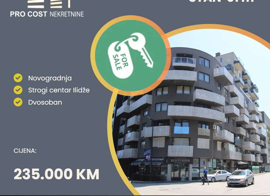 Prodaje se dvosoban stan u samom centru Ilidže u ulici Dr.Mustafe Pintola, općina Ilidža. Stan je pozicioniran na šestom spratu stambeno – poslovne zgrade koja posjeduje dva lifta.