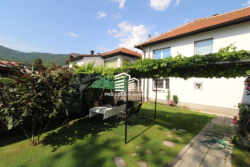 Pro Cost prodaje kuću spratnosti P+1 bruto kvadrature 150m2 u samom centru Pazarića. Prema informacijama vlasnika predmetna nekretnina je uknjižena a izgrađena je 1980. godine. Posljednja adaptacija je bila 2000. godine prilikom koje je promijenjena unutrašnja i vanjska stolarija, instalacije vode i struje, pod, oluci, postavljena je termo fasada i od tad se redovno održava. Grijanje je centralno na pelet i struju. U prizemlju kuće je smješten poslovni objekat u kojem se nalazi slastičarna koja uspješno posluje već dugi niz godina. Na drugoj etaži se pristupa vanjskim stepenica gdje je smješten prostrani dnevni boravak sa kuhinjom i trpezarijom, dvije spavaće sobe, kupatilo i dva balkona. Bitno je napomenuti da su grijanje i setovi za struju odvojeni i svaka etaža ima svoje brojilo. Ispred kuće se nalaze garaža kao i parking prostor za jedno vozilo. Iza kuće je smješten dio dvorišta u prirodnom okruženju sa obiljem zelenila koje je idealno za odmor i relaksaciju u privatnosti u ovom prirodnom i mirnom okruženju. Pored parcele protiče i potok što ovu nekretninu čini još atraktivnijom. Predmetna nekretnina je smještena u samom centru Pazarića tako da se u krugu od stotinu metara nalaze svi neophodni sadržaji za život poput trgovine, osnovne škole, autobuske i željezničke stanice, apoteke, džamije itd.