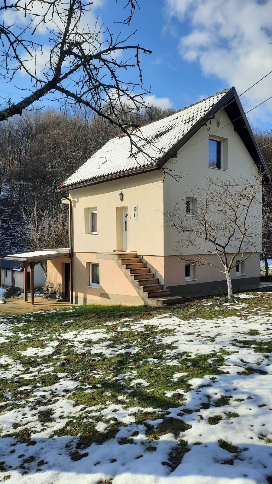 NAPOMENA: Postoji mogućnost kupovine i zemljišta od 38 duluma, koje se nalazi suprotno od kuće, zajedno sa kućom ili odvojeno tj.bez kuće.