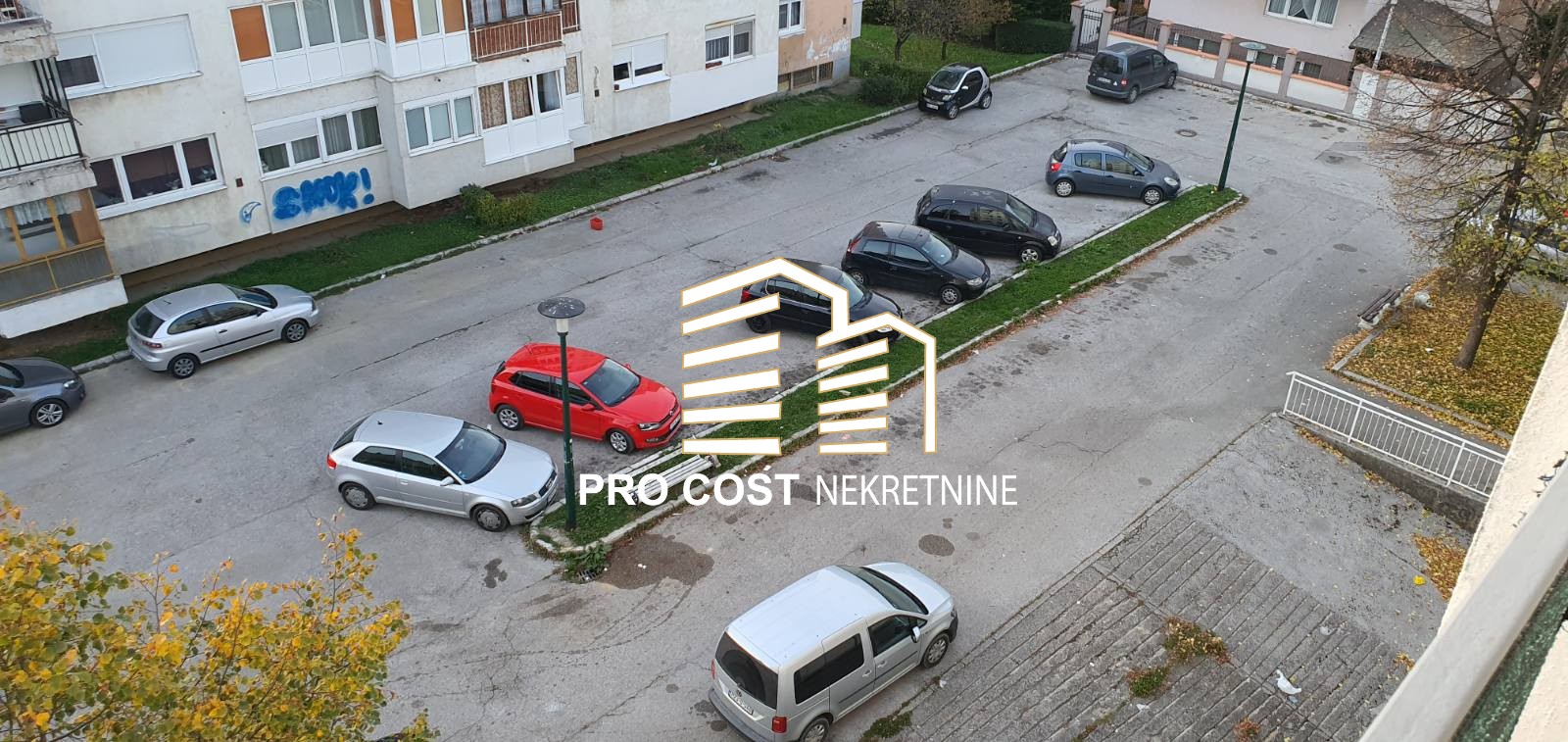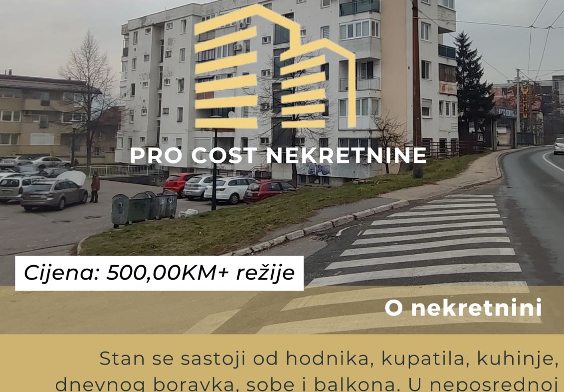 Pro Cost izdaje namješten stan površine 36 m2 na 4.spratu stambene zgrade bez lifta u naselju Švrakino selo, općina Novi grad Sarajevo. Stan se sastoji od hodnika, kupatila, kuhinje, dnevnog boravka, sobe i balkona. U neposrednoj blizini se nalazi trolejbuska stanica, a samo par minuta hoda i tramvajska stanica. Ispred zgrade se nalazi javni besplatan parking.