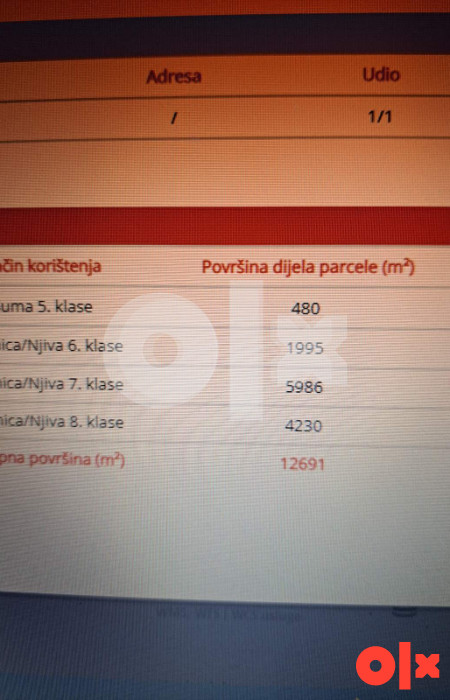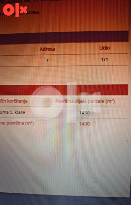Parcela posjeduje privatan prilaz, gdje ovu parcelu sačinjava 70% livade, a ostatak šuma.