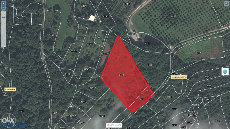 – k.č. 3621 ( 943 m² ) koja je u šumskom zemljištu i – k.č. 3622 ( 6.799 m²) sa 3/4 u građevinskom zemljištu .